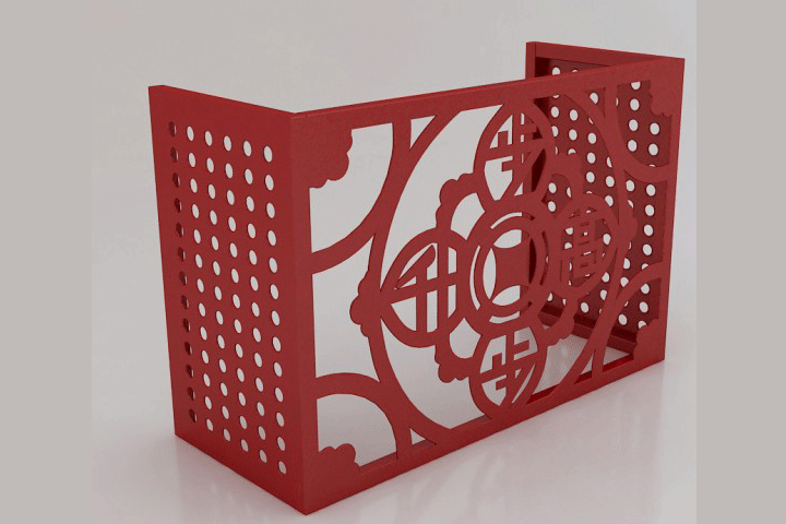 2、大面積的鏤空有利于氣流的流動,使鋁合金空調(diào)外機罩對空調(diào)外機散熱的阻擋因素降到最低,同時減少風力對空調(diào)防護罩的作用力,增強了空調(diào)外機罩的抗風性能。