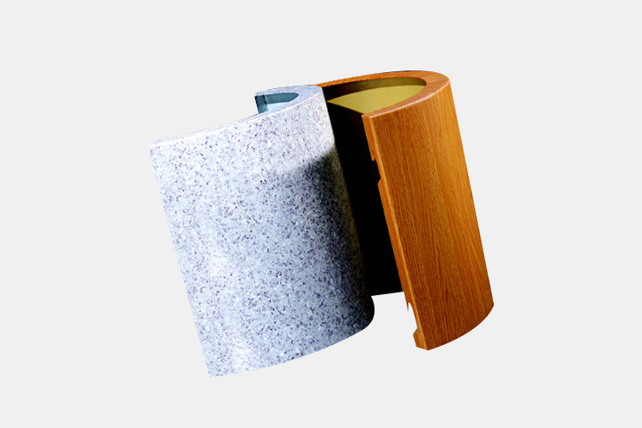 弧形鋁單板可以運(yùn)用與室內(nèi)墻面、天花吊頂、隔墻、包柱、包梁、陽臺、門套、窗臺、柜臺、廣告版,甚至屏風(fēng)已經(jīng)工藝品等裝飾。